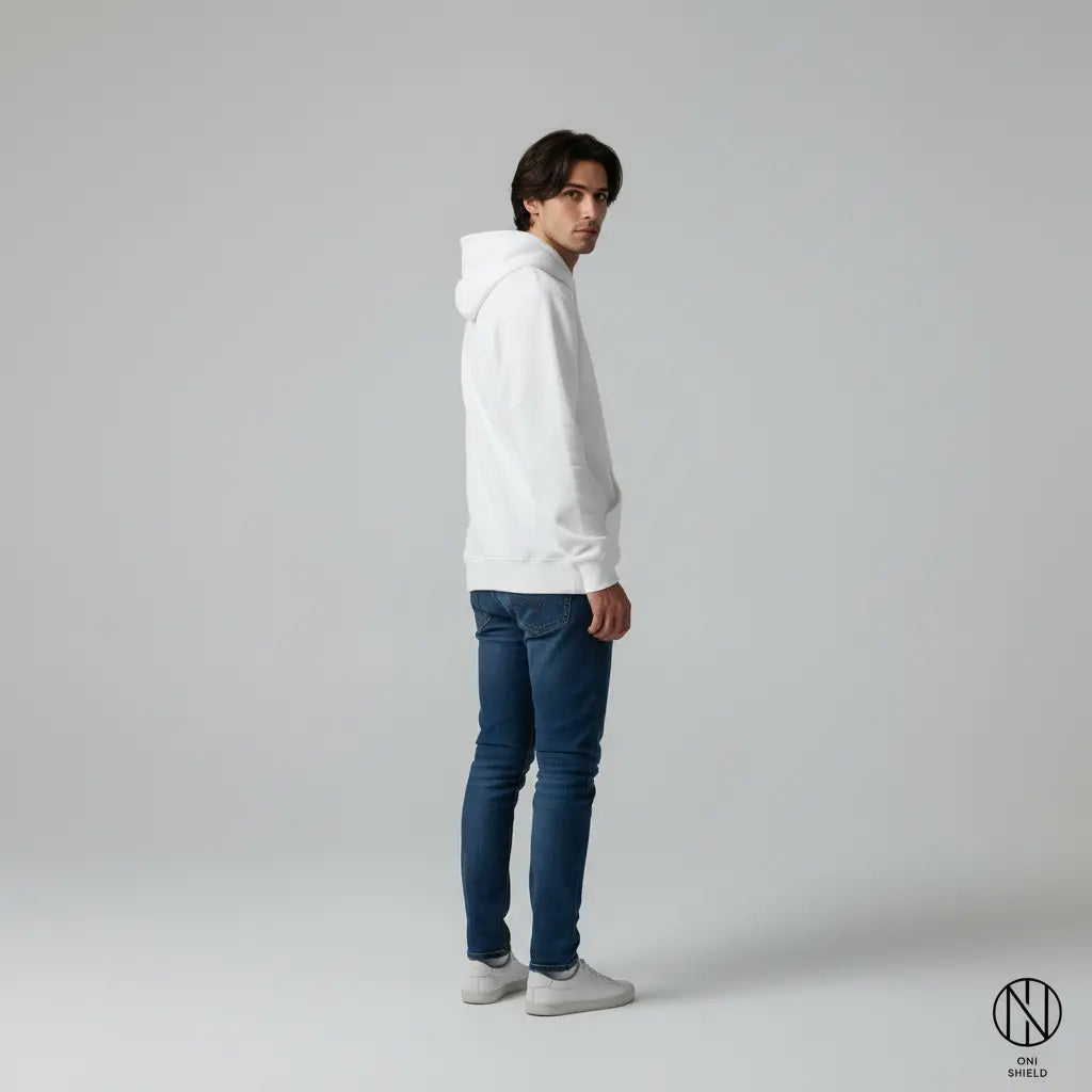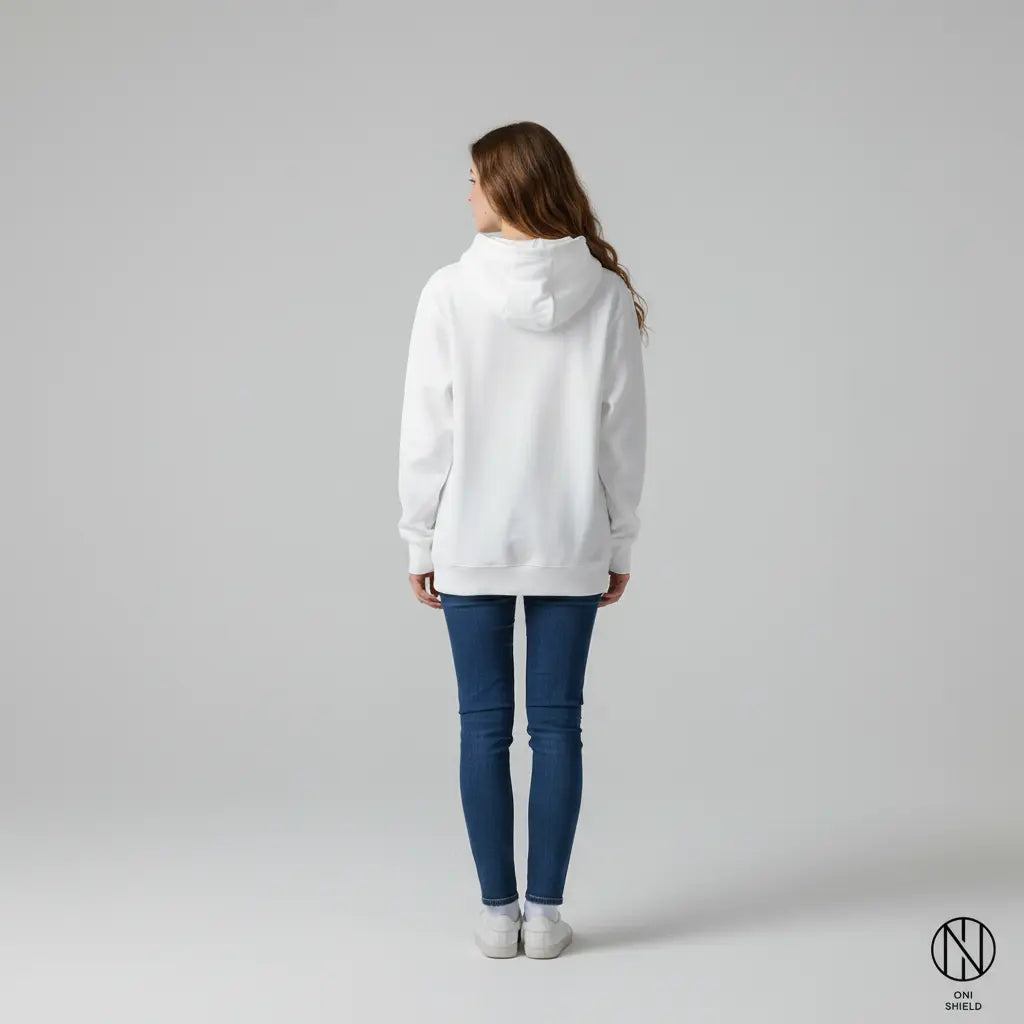 This hoodie is crafted with high-quality materials that ensure maximum comfort. The soft fabric feels great against your skin, and the fit is designed to allow for easy movement. So, you can wear it all day without feeling restricted. Additionally, the Oni shield white hoodie is durable, so it withstands regular washing without losing its shape or comfort. You get style and longevity in one package.