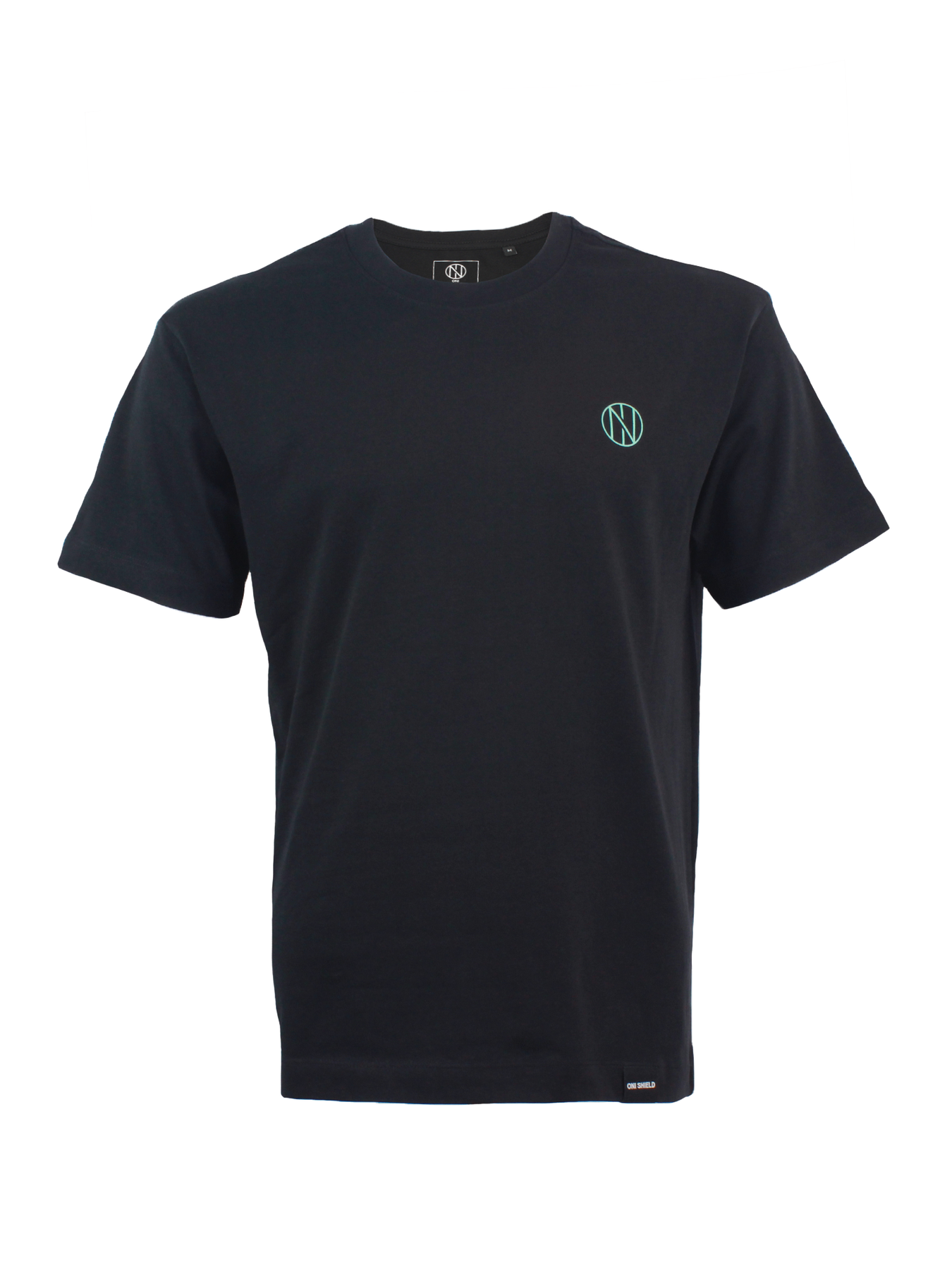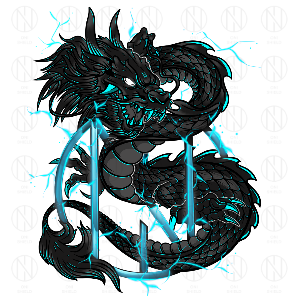 The Oni Shield t shirt features a striking black lightning dragon design on a 100% cotton heavy tee. It boasts a soft hand feel, a ribbed crew neck, and twin-needle stitching on the shoulders and back neck. The hem and cuffs are also twin-needle stitched, ensuring a durable and fashionable retail fit.